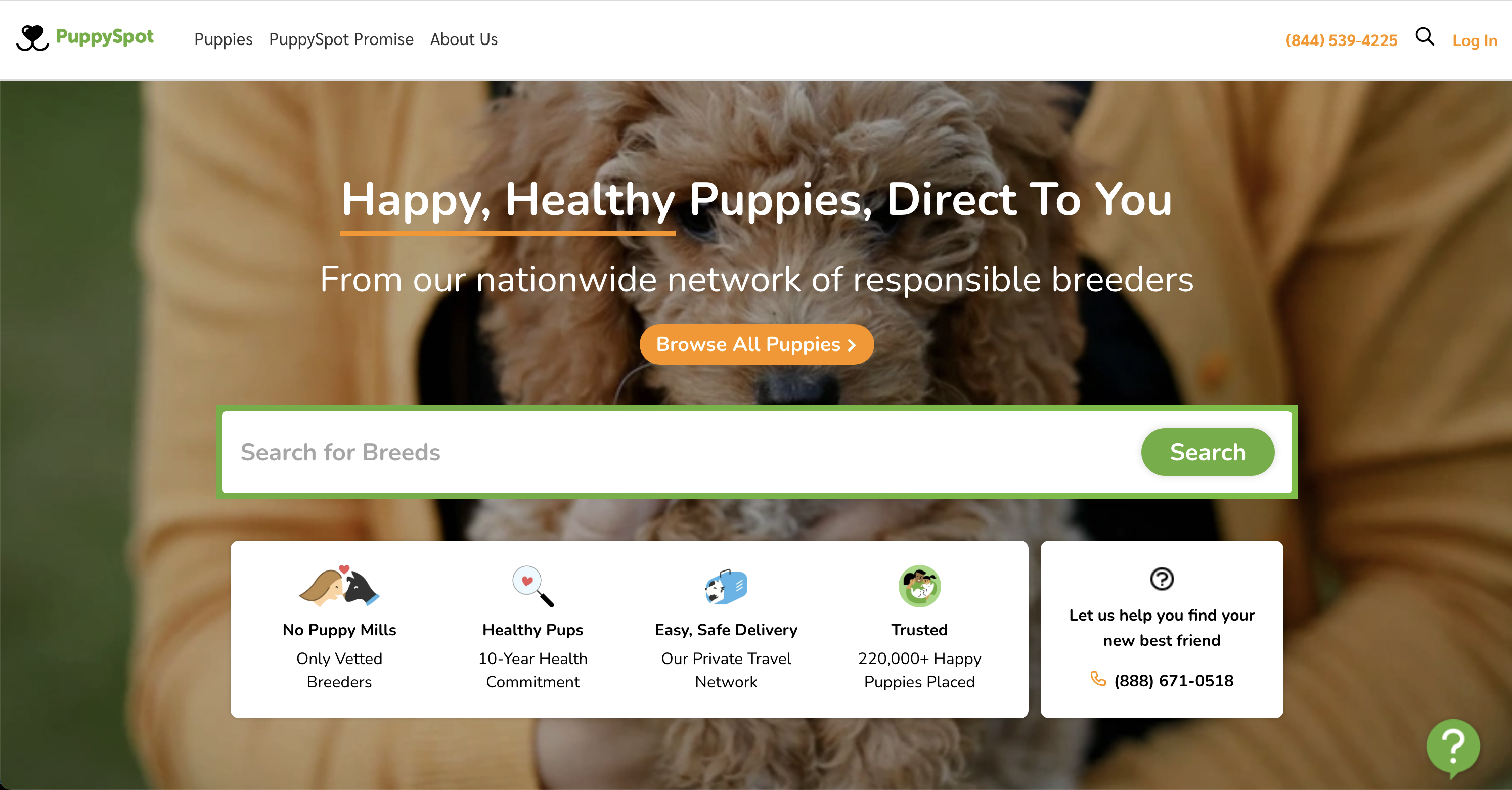 The homepage offers intuitive navigation, allowing users to easily filter and sort puppies based on their preferences, such as breed, age, and size.
